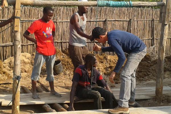 Por hora, nosso poço artesiano ainda é um sonho. Só ele ofereceria vasão suficiente para todas as demandas, incluindo a horta e a granja. No entanto, não podíamos esperar mais tempo e uma solução paleativa precisava ser adotada com urgência. Esta solução intermediária veio com a Caravana sem Fronteiras de outubro/2015, onde alguns caravaneiros se prepararam com antecedência e foram para Moçambique equipados e prontos para pesquisar formas economicamente viáveis para obtenção de água. Após algumas tentativas frustradas, optaram por dar continuidade à perfuraçao de um poço manual, com profundidade de 12 metros, devidamente calçado e com capacidade para 2.500 litros/dia. O poço havia sido iniciado há um ano, pela mesma equipe.