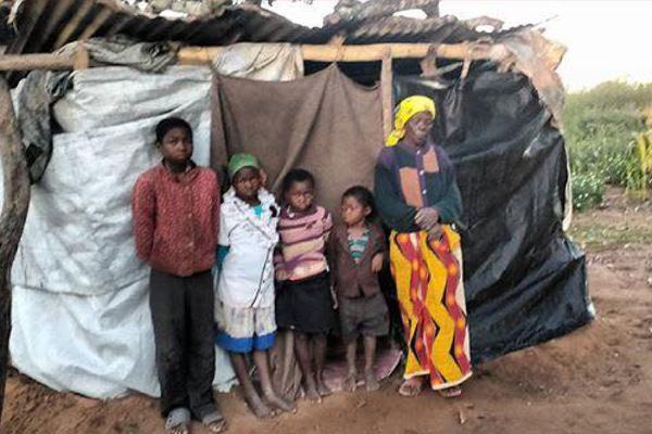 Os pais deles morreram vítimas da AIDS e agora vivem com a vovó Percina nesta “casa” de lona.
