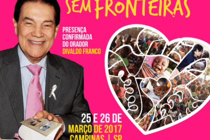 Temos a alegria de convidar a todos e todas para o I Encontro da Fraternidade sem Fronteiras, que realizar-se-á em Campinas, nos dias 25 e 26 de Março. No formato de um congresso, teremos várias palestras, arte, música e muita confraternização na vivência da fraternidade que nos une nesta causa de amor. O tema central é: “Um só povo, um só coração” e contaremos com a presença de vários apoiadores tais como Divaldo Franco, Jorge Godinho, Irmã Aíla Pinheiro, Rossandro Klingey, Pastor Milton, Wagner Moura, Wellerson Santos, Andrei Moreira e centenas de corações que, juntos, fazem a Fraternidade e o amor serem verdadeiramente sem fronteiras. O evento é aberto a todas as pessoas interessadas e você é muito bem vindo(a).