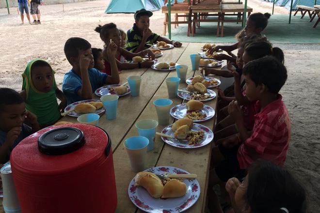 Vida em comunidade – Os próprios venezuelanos cuidam do lugar onde são acolhidos. Eles cozinham, limpam, servem um ao outro. “Nós somos uma comunidade, uma grande família. É como minha segunda casa. Vivi tudo isso que eles estão passando e quando soube do projeto, eu pensava que era um sonho, mas aconteceu. É possível ajudar o próximo”, relata, Alba Gonzales, venezuelana e coordenadora do centro de acolhimento, que em 2015, atravessou a fronteira pelo mato com um filho pequeno no colo.