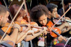 Jovens da periferia de Campo Grande que fazem parte da Orquestra Filarmônica Jovem Emmanuel, um projeto apoiado pela FSF, se apresentaram em um momento de muita emoção. “O projeto da Orquestra tira crianças da rua e dá um foco. Em vez de fazerem qualquer outra coisa, elas estão ali dentro aprendendo sobre algo maravilhoso que é a música”, declara Ana Vivian, de 18 anos que participa do projeto desde seus oito anos de idade.