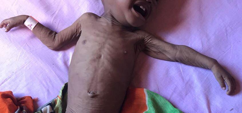 “Eu atendi a Razana no domingo, dia 08 de julho. A mãe trouxe sem nenhuma queixa urgente, mas a equipe de triagem logo identificou que se tratava de uma desnutrição aguda. 1 ano e 2 meses, pesando 4 kg. Alimentava-se 3 vezes ao dia apenas com arroz e água. A mãe tentava amamentar, mas já sem leite. Razana estava estável apesar do quadro nutricional muito grave e por isso, não foi hospitalizada. Iniciamos protocolo para desnutrição aguda, com medicações e fórmula para primeira semana de desnutrição. Está em acompanhamento diário.”