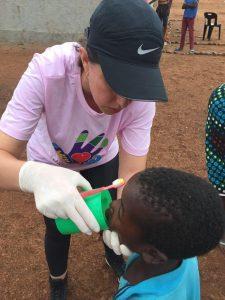 “Em dezembro de 2017 estive em Moçambique com toda a minha família para inaugurar o projeto Sonhar sem Fronteiras na aldeia de Muzumuia. Como levamos muito material de escovação (doação) a coordenadora Cesaltina sugeriu que em um dos dias fôssemos até Massingir para distribuir os kits.