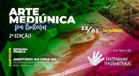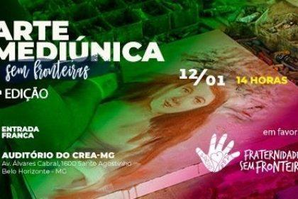 Belo Horizonte se prepara para receber novamente o evento “Arte Mediúnica sem Fronteiras”. Será no dia 12 de janeiro, a partir das 14 horas, no Auditório do CREA MG, no bairro Santo Agostinho. Para além dos belos quadros vendidos em leilão e com recursos 100% doados aos projetos da Fraternidade sem Fronteiras, Florêncio Anton nos convida para uma tarde que só é possível ser sentida com o coração. Não há palavras suficientes que expliquem a rapidez e riqueza de detalhes das obras produzidas pelo sua extraordinária mediunidade. A primeira edição do evento produziu 8 obras, com tempo médio de produção de 13 minutos, assinadas por pintores admirados por séculos: Portinari, Picasso, Van Gogh, Renoir, Tarsila do Amaral, Camille Pissaro e Mary Cassatt.