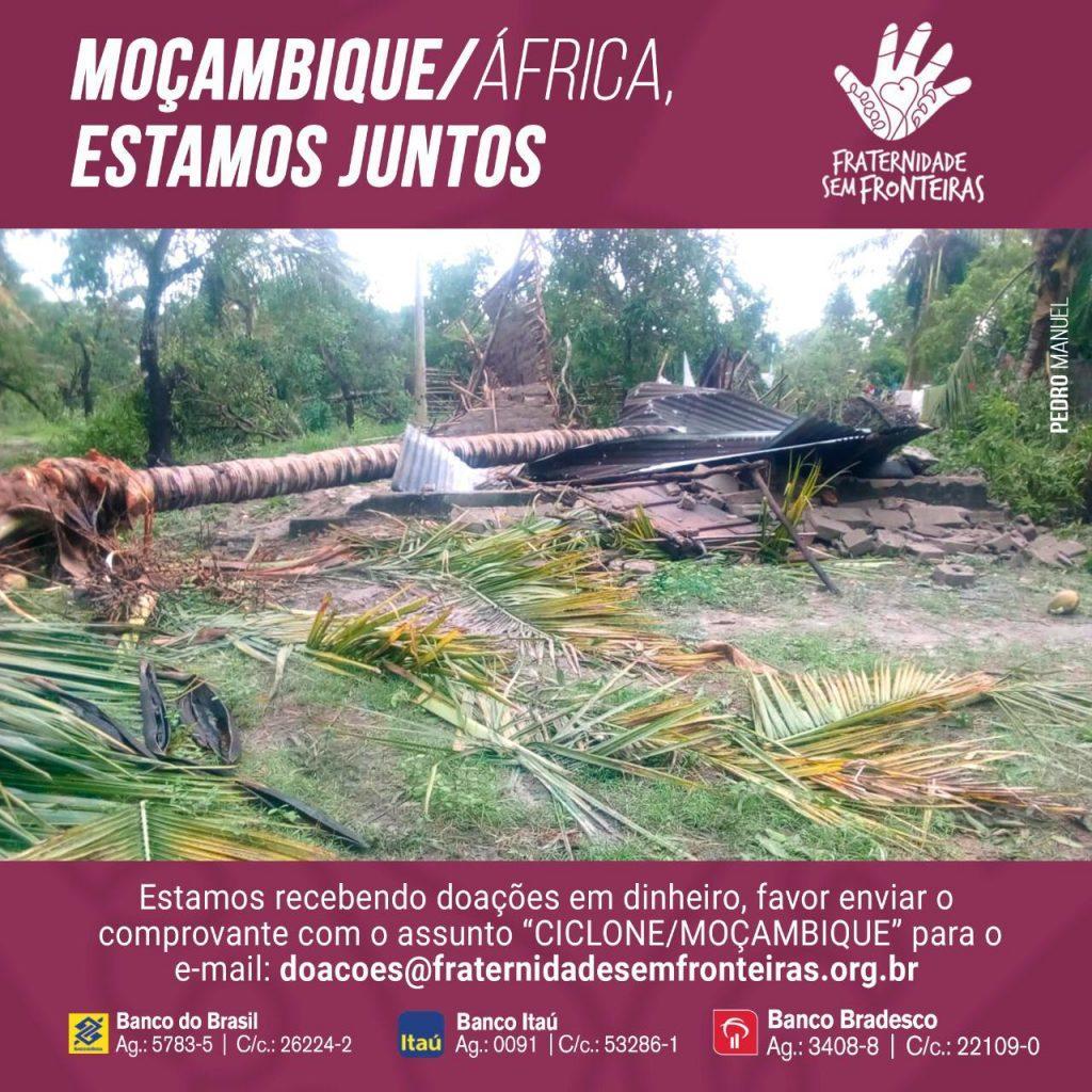 Uma aldeia em que a Fraternidade sem Fronteiras (FSF) atua, Dondo, foi destruída pelo Ciclone e o País sofre enorme dano. Somos solidários às milhares de pessoas desabrigadas e afetadas por este desastre natural. Estamos recebendo doações em dinheiro para reconstruir a unidade apoiada pela FSF e auxiliar parceiros locais que estão na linha de frente do amparo à população.