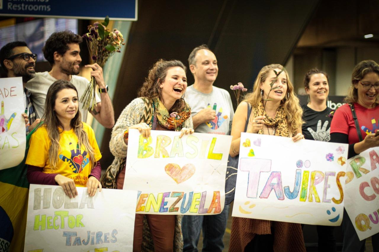 A família, que é composta pelos pais, Tajiris Cristina Maita Aray e Hector José Serrano Aray e pelos dois filhos, Hector Luis Serrano Maita, de 12 anos e Tayler Jeuss Serrano Maita, de cinco, foi recebida com muito amor e alegria por um grupo de 17 pessoas que prepararam até cartazes de boas vindas. “Foi muito lindo, todo mundo chorou bastante”, compartilha Fernando, que continua: “depois tivemos um momento com eles no aeroporto, onde sentamos no chão e realizamos uma dinâmica. Foi muito bacana”.