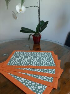 Como forma de colaborar, a enfermeira aposentada, Cláudia Othero Nunes, tem confeccionado sacolas, toalhas de rosto e jogos americano com retalhos de chita, brim e tricoline, entre outras texturas, além de linhas coloridas e uma boa dose de criatividade.