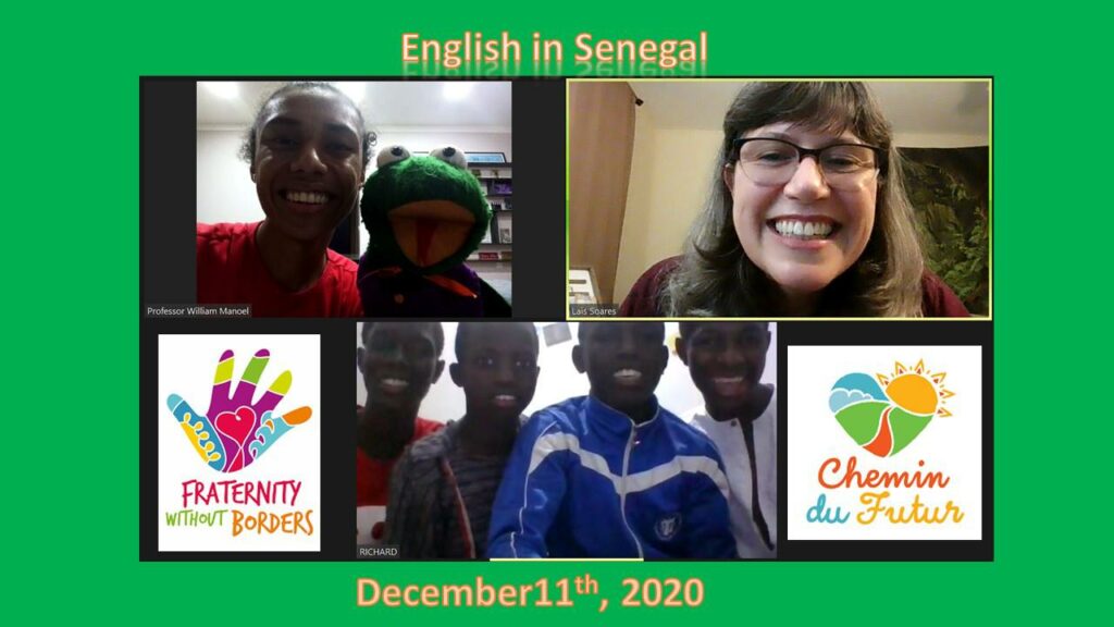 Três vezes por semana, às terças, sextas e sábados, o grupo de professores de inglês e voluntários da Fraternidade sem Fronteiras (FSF) aparecem na tela dos computadores do orfanato do Chemin du Futur. Do outro lado, os meninos aguardam a conexão e, entre sorrisos, recebem mais do que o aprendizado de um novo idioma: recebem amor e acolhimento. A turma é composta por vinte meninos, entre seis e dezoito anos, acolhidos do projeto Chemin du Futur, localizado em Dakar, capital do Senegal.