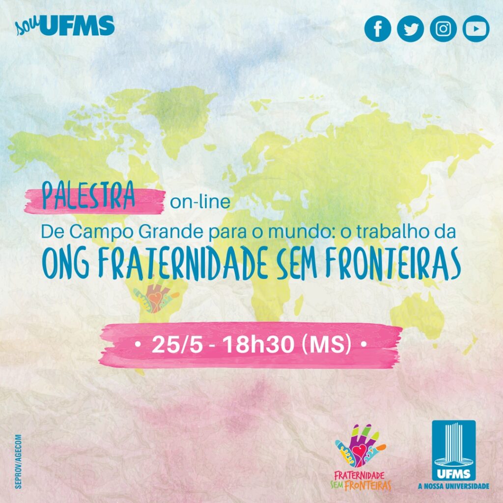 Com o tema “De Campo Grande para o mundo: O trabalho da ONG Fraternidade sem Fronteiras”, a gerente de voluntariado da Organização humanitária Fraternidade sem Fronteiras (FSF), Ângela Araújo, participa de uma palestra online com os acadêmicos da Universidade Federal de Mato Grosso do Sul (UFMS), na noite desta terça-feira (25).