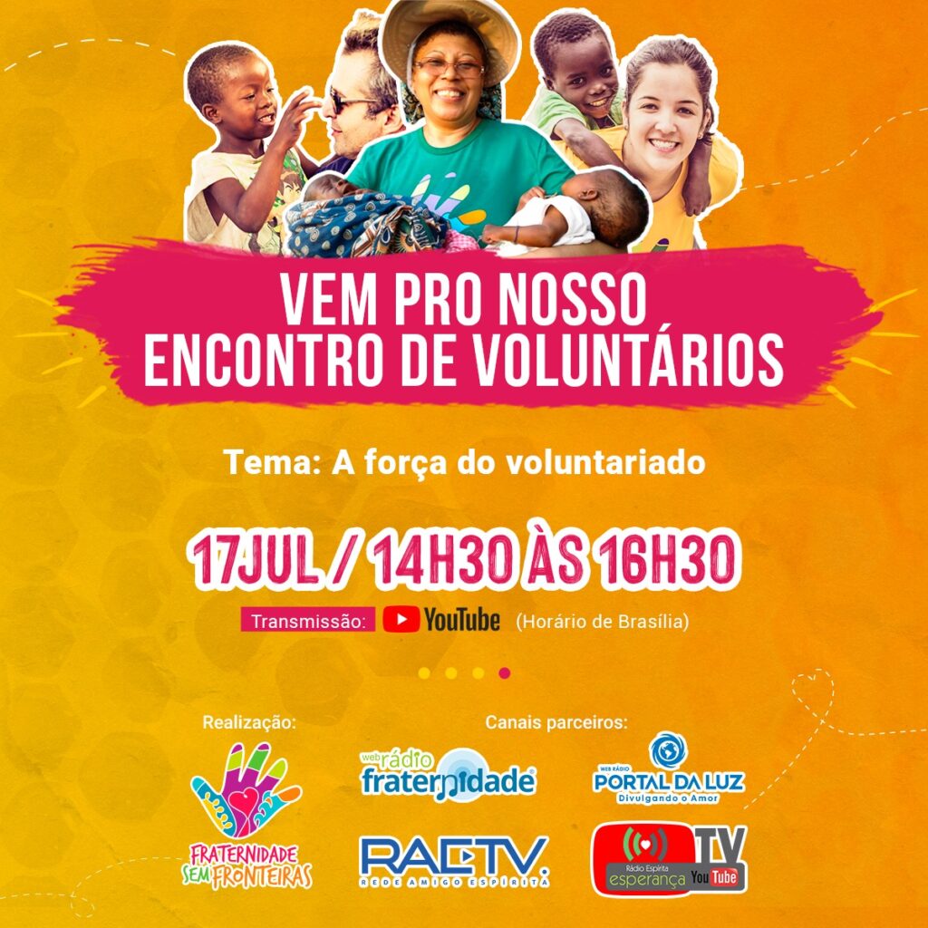 Com o tema: “A força do Voluntariado”, o encontro terá duração de 2 horas e é voltado a todos os voluntários da FSF e ainda, àqueles que têm vontade de começar um trabalho voluntário ou à Fraternidade sem Fronteiras, mas ainda não sabem como.