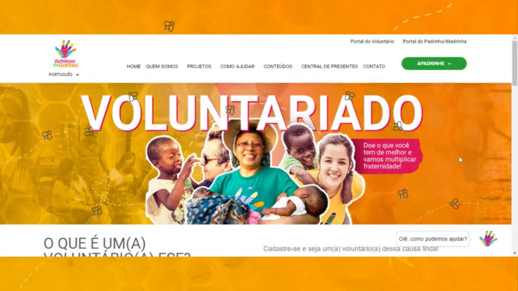 O Portal do Voluntariado está disponível neste link: https://voluntariado.fraternidadesemfronteiras.org.br/voluntariado