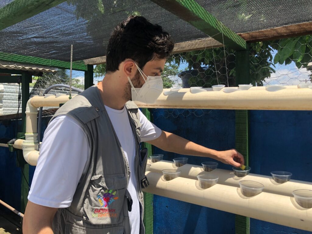 Luís José Rausseo, de 53 anos, é um dos colaboradores na iniciativa. Ele tem dois filhos e está há oito meses em Boa Vista/RR. Para atravessar a fronteira entre Venezuela e Brasil, caminhou por 27 dias. Desempregado, ele vê na aquaponia uma oportunidade de capacitação para encontrar um emprego em Roraima.