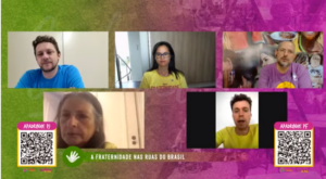 O Projeto Fraternidade na Rua iniciou o trabalho em 2018 com o objetivo de acolher as pessoas em situação de rua e durante a pandemia ampliou-se de um para oito polos de trabalho. Representantes de cada frente de trabalho do FNR no Rio de Janeiro, São Paulo, Uberlândia, Belo Horizonte e Campo Grande participaram do painel ‘A fraternidade nas ruas do Brasil’.