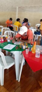 Também foi realizado, por uma equipe de enfermagem, o atendimento médico com triagem; atendimento social, que coletou informações para desenvolvimento de projetos, e, de imediato, realizaram alguns encaminhamentos para o Caps AD e casas de acolhimento. Foi feito atendimento jurídico, coleta de dados para organização de documentação e direcionamentos que serão realizados nos próximos dias. Atividades recreativas também foram oferecidas com música ao vivo, artesanatos, desenhos, pinturas, montagem de bijuterias, jogos de dama e xadrez.