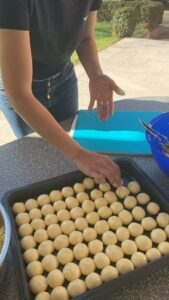 “As coisas não são por acaso. Tínhamos um amigo que ficou desempregado devido a pandemia e ele começou a fazer pão de queijo. Fiz um anúncio no nosso grupo para ajudá-lo a vender. Mas ele acabou mudando para a Inglaterra, nos vendeu o polvilho e nos cedeu uma receita maravilhosa. O custo maior aqui pra fazermos o pão de queijo é o polvilho”, conta a voluntária.
