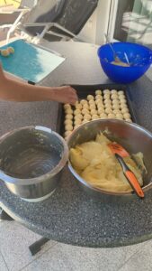 “As coisas não são por acaso. Tínhamos um amigo que ficou desempregado devido a pandemia e ele começou a fazer pão de queijo. Fiz um anúncio no nosso grupo para ajudá-lo a vender. Mas ele acabou mudando para a Inglaterra, nos vendeu o polvilho e nos cedeu uma receita maravilhosa. O custo maior aqui pra fazermos o pão de queijo é o polvilho”, conta a voluntária.
