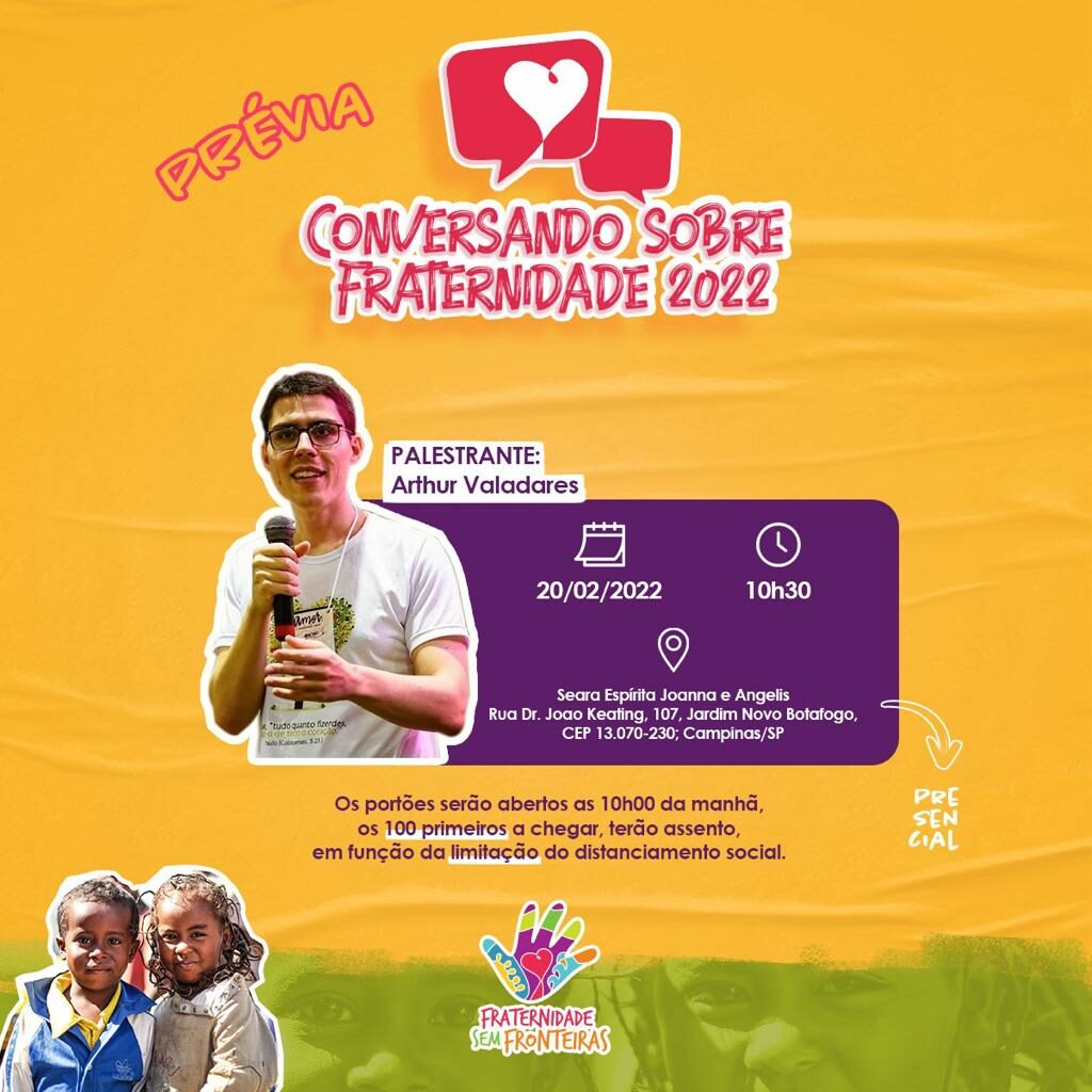 Que tal refletir sobre os caminhos contemporâneos da fraternidade, da caridade e da humanidade? Esse é o objetivo do evento Conversando sobre Fraternidade, uma série de encontros híbridos (on-line e presencial) sobre a temática organizada pela Organização Humanitária Fraternidade sem Fronteiras ao longo de 2022.