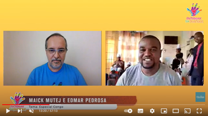 A transmissão ao vivo, do último domingo, do Espiritualidade sem Fronteiras Especial Congo, foi conduzida pelos voluntários da Fraternidade sem fronteiras (FSF), Edmar Pedroza e Maick Mutej, que também é coordenador do Projeto Órfãos do Congo, na República Democrática do Congo. As crianças do Projeto prepararam uma surpresa com dança, música e boas-vindas para quem acompanhava a live.