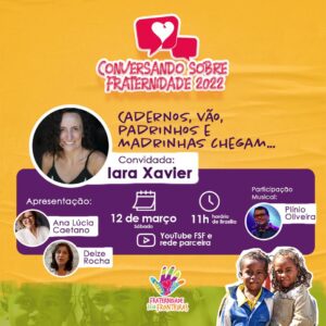 Sobre o Conversando sobre Fraternidade: será realizado entre os dias seis e 16 de março de 2022, com o objetivo de proporcionar uma reflexão sobre o que é fraternidade em uma série de encontros virtuais e presenciais no Brasil e no exterior. Os momentos serão para sensibilizar as pessoas, levar a mensagem de fraternidade ao público que já nos acompanha e para todos aqueles que desejam conhecer, ajudar, mas ainda não sabem como.