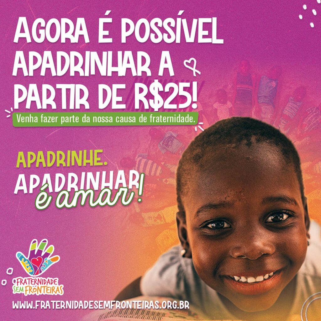 A Organização humanitária Fraternidade sem Fronteiras (FSF) lança, a partir de hoje, 26 de abril de 2022, o apadrinhamento com valor a partir de R$25. A mudança na contribuição mínima por mês foi pensada para possibilitar ao máximo de pessoas o envolvimento com a causa e a alegria em ajudar.