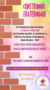 Clínica da Alma, Unidade II – localizada a aproximadamente 13 quilômetros da cidade de Uberlândia – MG, no triângulo mineiro, com 2,5 hectares de extensão, a  Clínica da Alma faz parte do Projeto Fraternidade na Rua, da ONG Fraternidade sem Fronteiras. O objetivo é oferecer uma estrutura organizada e preparada para as pessoas em situação de rua com dependência química. No local, serão oferecidos acolhimento, refeições, laborterapia, atendimentos médicos, psicológicos com todos os cuidados para a recuperação e reinserção na sociedade, incluindo cursos de qualificação profissional e vagas de emprego. A primeira unidade está localizada em Campo Grande- MS e atualmente atende 250 pessoas.