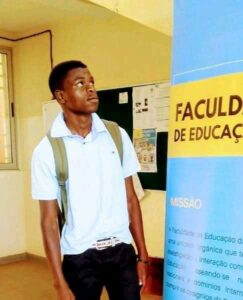 Enoqque na Universidade de Pùnngué, em Moçambique, cursando Licenciatura em Língua Inglesa