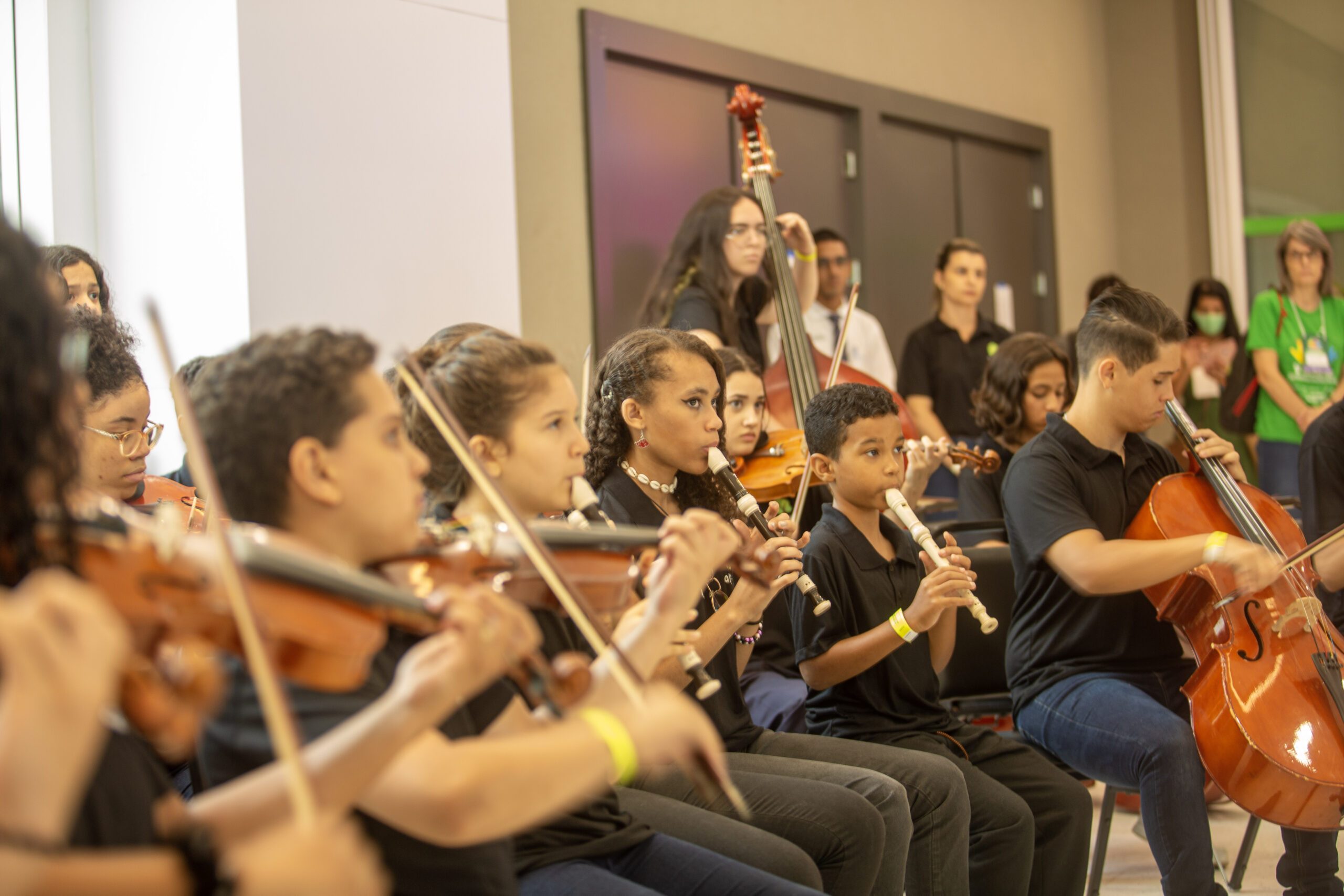 No primeiro dia do evento, a Orquestra Alexa se apresentou aos participantes que realizavam o credenciamento do V Encontro FSF