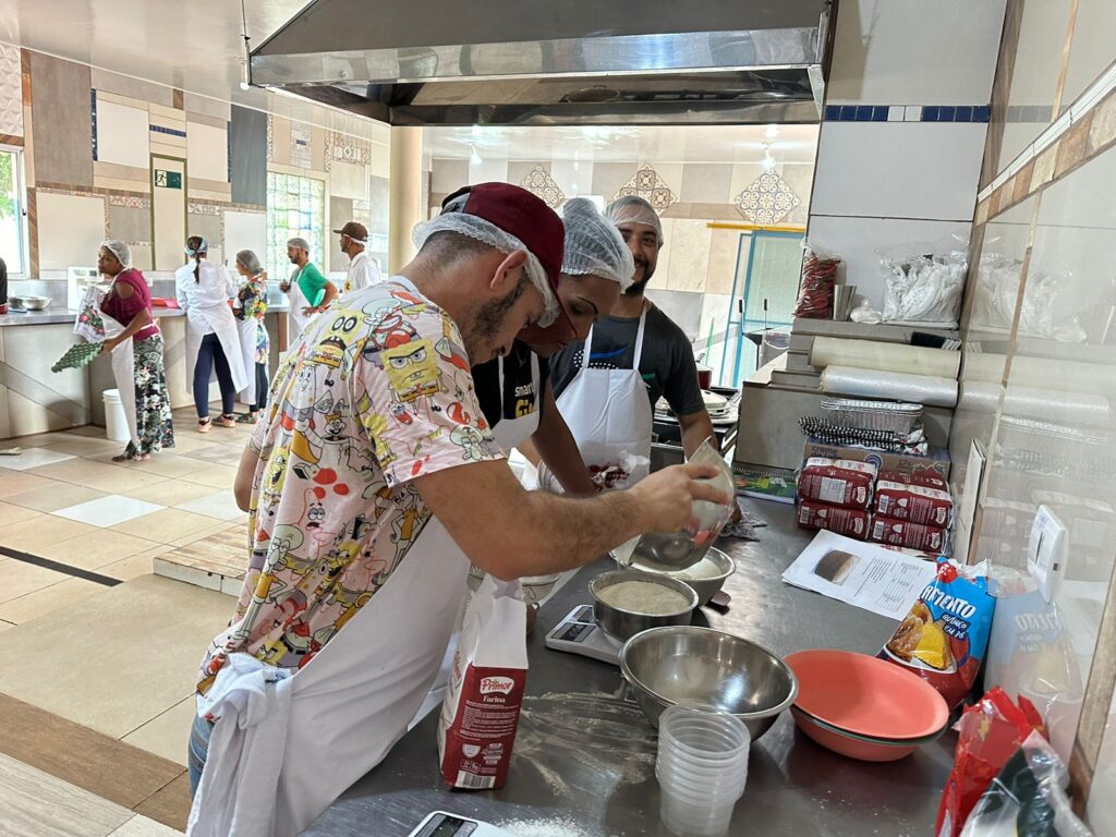 Esta é a quinta etapa do curso de qualificação que começou em outubro de 2022, com o preparo de 29 tipos de receitas entre doces e salgados, além da aprendizagem de 12 técnicas culinárias. Pelo menos, 75 acolhidos participaram das aulas até agora.