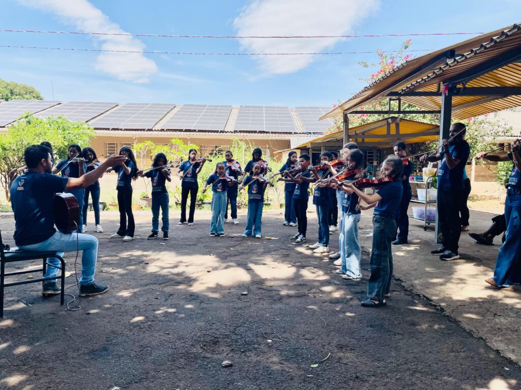 “É uma troca linda: nossos acolhidos levam música e carinho, e recebem dos idosos histórias, sorrisos e aprendizados que ficam para sempre. Essa é a essência da fraternidade que queremos espalhar”, destaca Paulo Bernardi, coordenador do projeto Orquestra Fraternidade Sem Fronteiras.