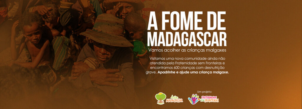 Madagascar é um dos cinco países mais pobres do mundo e vive uma das crises humanitárias mais desafiadoras que existem. Milhares de famílias estão na extrema pobreza e sofrem com a fome. Desde 2017, o projeto Ação Madagascar, da Fraternidade sem Fronteiras, atua no acolhimento de famílias e crianças com desnutrição, oferecendo tratamento nutricional, alimentação, atendimento médico, água, educação e oficinas para o trabalho e geração de renda.