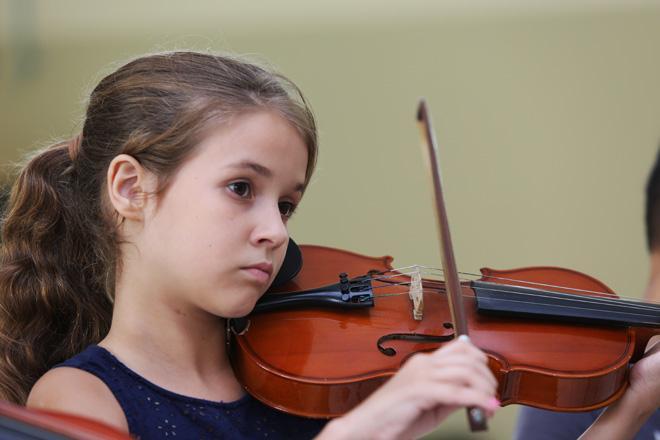 O projeto oferece aulas de oito instrumentos diferentes: violino, viola, violoncelo, contrabaixo, flauta, clarinete, trompete e saxofone. As aulas acontecem em quatro polos parceiros, em dias alternados, com acompanhamento próximo e didática acolhedora.